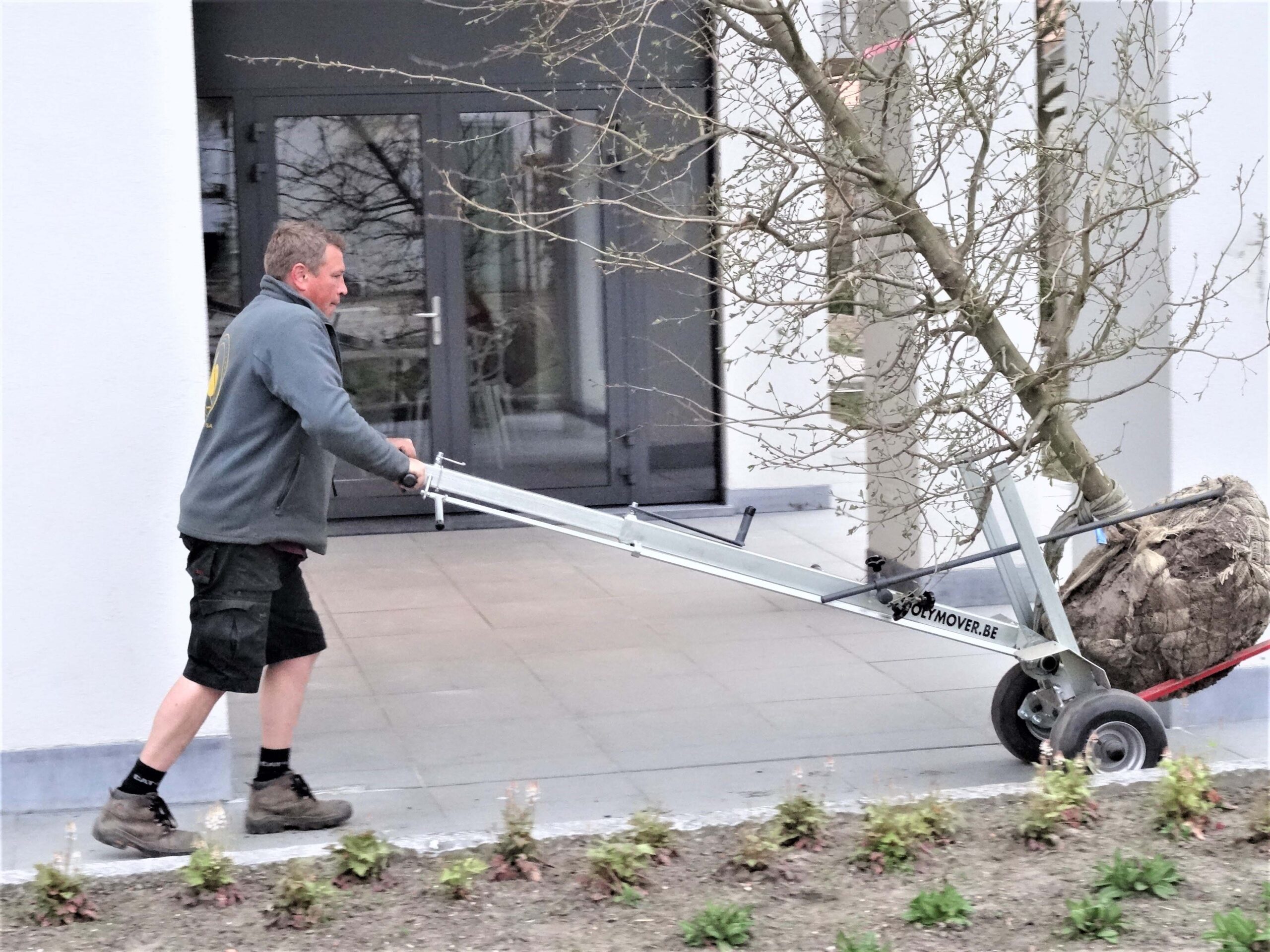 - Voor kleine tuinen of aanplantingen in bestaande tuinen waar een minigraver niet kan gebruikt worden, bevelen wij de PolyMover U kan deze bij ons aankopen/huren.
